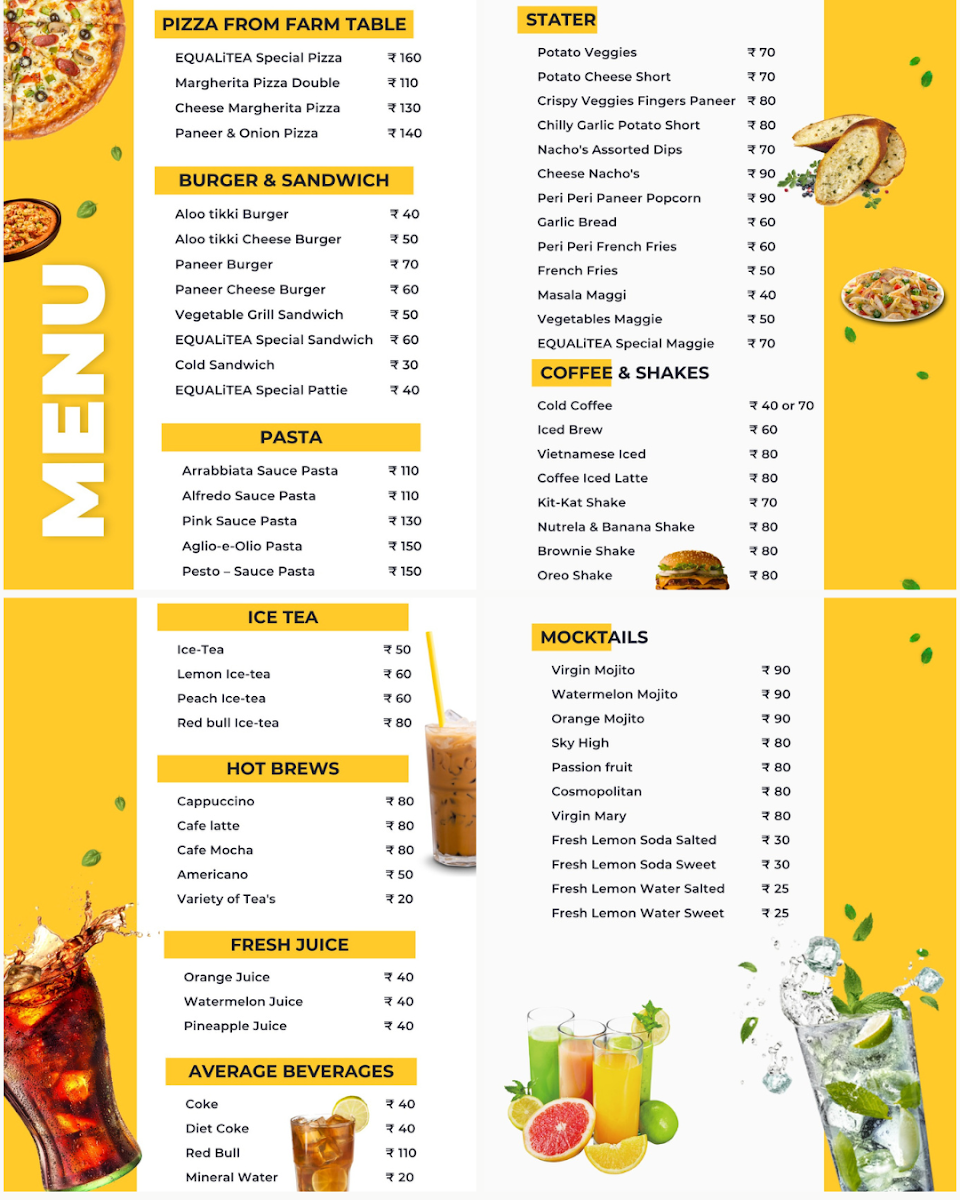 EQUALiTEA Cafe | Cafe in Kota | Tea & Coffee Hub Menu